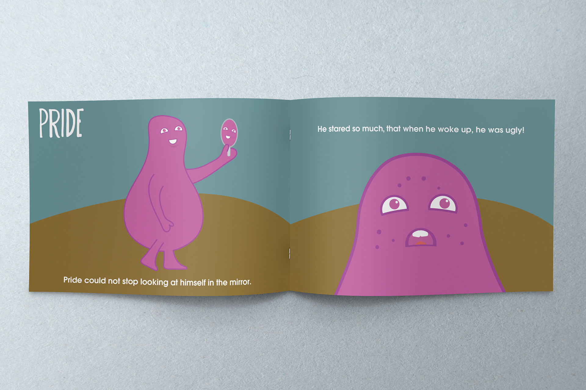 Written and illustrated children’s storybook, which aims to educate young children on the basic meaning of each deadly sin. The book uses language and imagery that is easily understood.